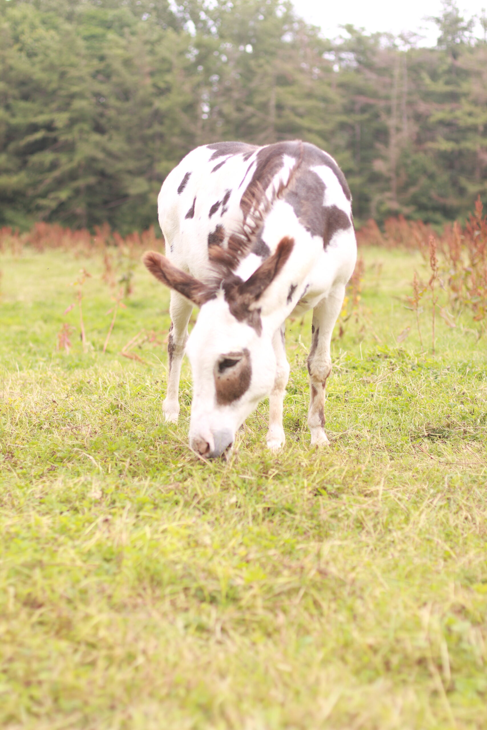 Âne de couleur pie, Tao adore qu’on lui porte de l’attention ; et les caresses, n’en parlons-pas, il adore ! Tao saura aussi très bien manifester avec de superbes Hihaaaaan son envie de croquer dans une pomme.Tao et Sushi sont comme Tic and Tac, jamais l’un sans l’autre !